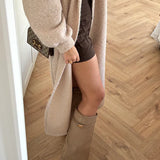Diese Stiefel aus 100% veganem Leder sind mehr als nur ein Accessoire – sie sind ein echtes Style-Statement. Ihr Design, das eine übergroße Silhouette mit maßgeschneiderten Details – wie der goldenen Schnalle und der umhüllenden Textur – kombiniert, zieht die Blicke auf sich und definiert die Regeln der urbanen Mode neu.