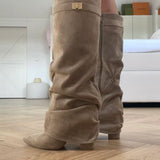 Diese Stiefel aus 100% veganem Leder sind mehr als nur ein Accessoire – sie sind ein echtes Style-Statement. Ihr Design, das eine übergroße Silhouette mit maßgeschneiderten Details – wie der goldenen Schnalle und der umhüllenden Textur – kombiniert, zieht die Blicke auf sich und definiert die Regeln der urbanen Mode neu.